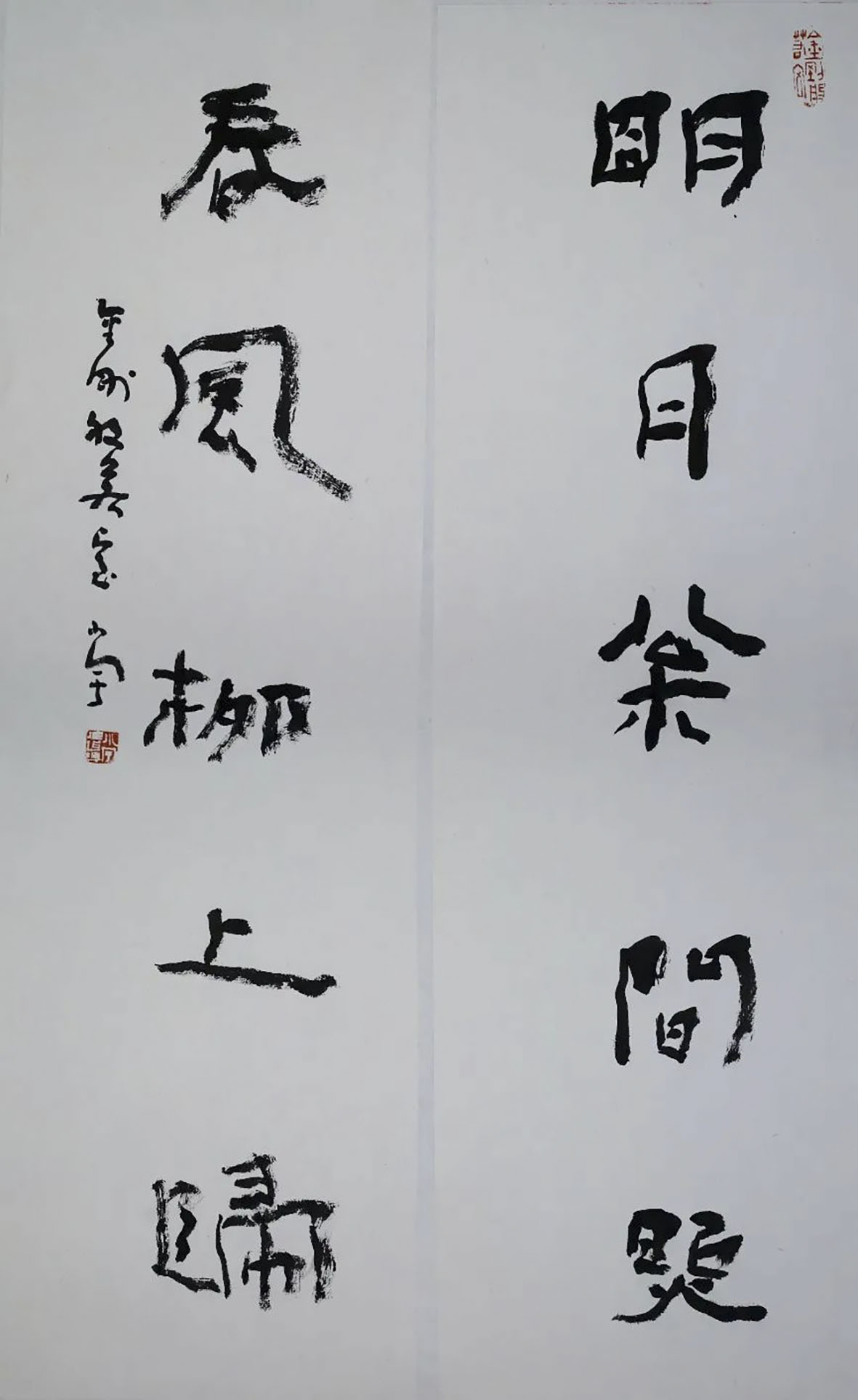 隶书“明月春风”联  69cm×17cm×2