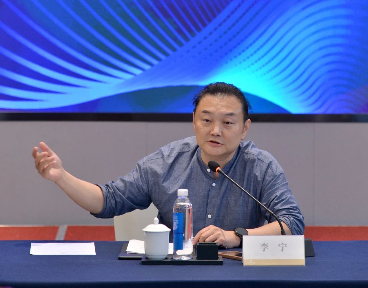 图为全国高校魔术社团联盟理事长李宁讲话